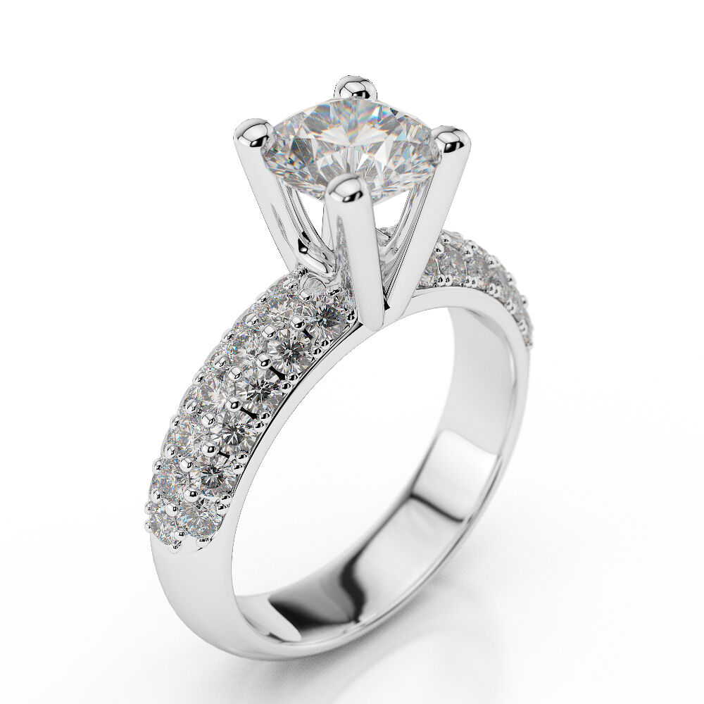 Diamond Ring Sidestones 1.95CTW (Center Stone 0.95ct) in 14K White Gold. Free Shipping - 30 Day Returns - Appraisal Certificate Included. This beautifully designed diamond ring has been meticulously crafted to perfection. Exclusively designed by the Brillianteers Diamond Studio guaranteeing its quality and excellence. Each stone is hand picked and inspected making sure that it has the ultimate sparkle and brilliance. Our unique classic designs will be sure to draw compliments anywhere you go and will be cherished for a lifetime.
