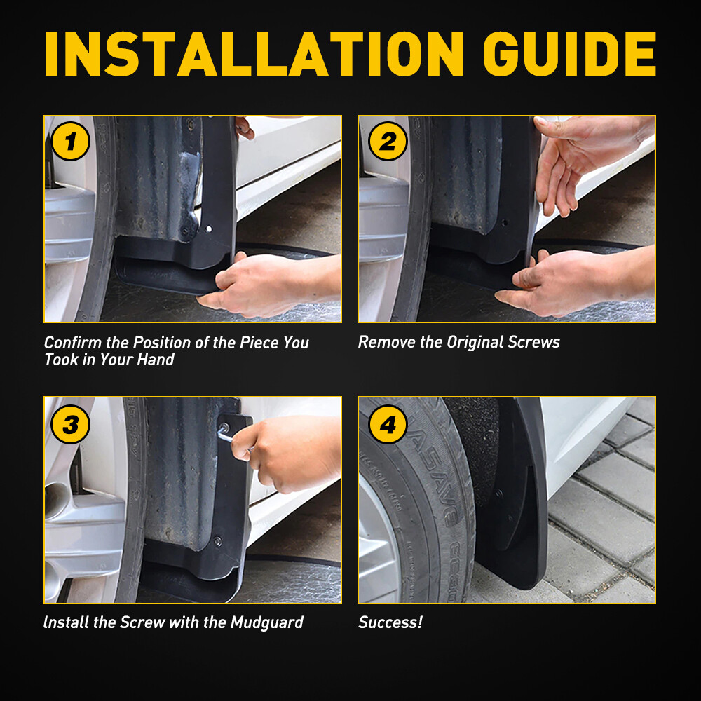 【Full Set】This set includes mud guards for both the front and rear sides of your vehicle. With mud guards for all four sides, your car will have complete protection.