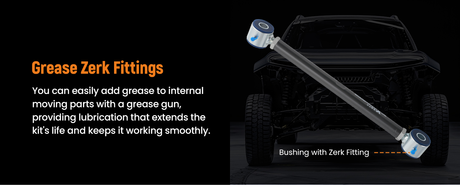- Made by high strength steel and durable Powder-Coated Finish, heat-resistant urethane pivot bushings that are designed to withstand weather conditions.