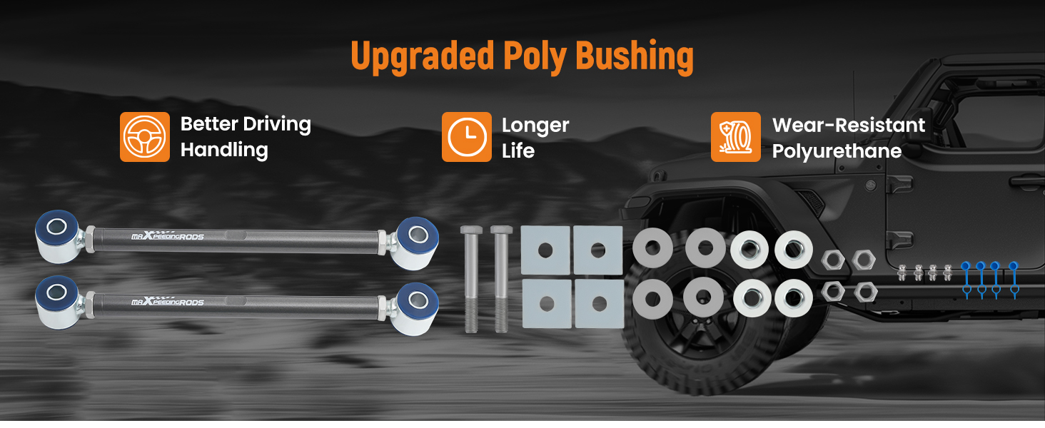 - Upgraded from rubber bushings to polyurethane bushings, solving the problem of rapid wear of rubber bushings, and provides more responsive handling