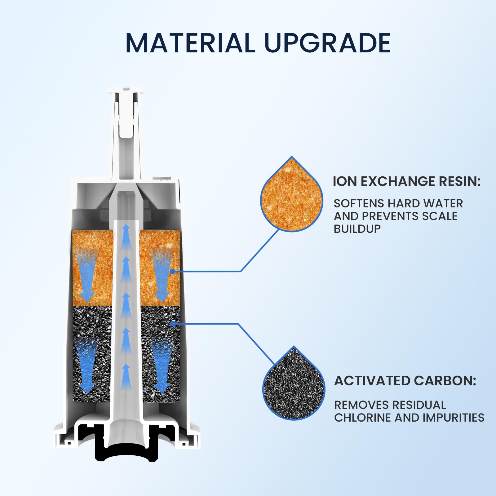 HINWEIS: Bitte nehmen Sie den Filter vor dem Gebrauch heraus, tauchen Sie ihn 5 Minuten lang in Wasser ein, bis keine Luftblasen