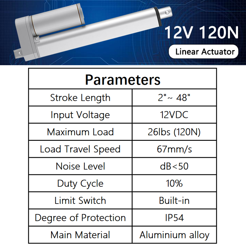 POWERFUL-- This liner actuator is a good tool to extend stroke relatively. It can provide a pushing or pulling force of up to 120N(Speed : 67mm/s)