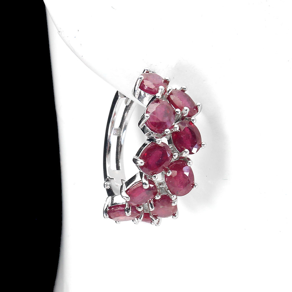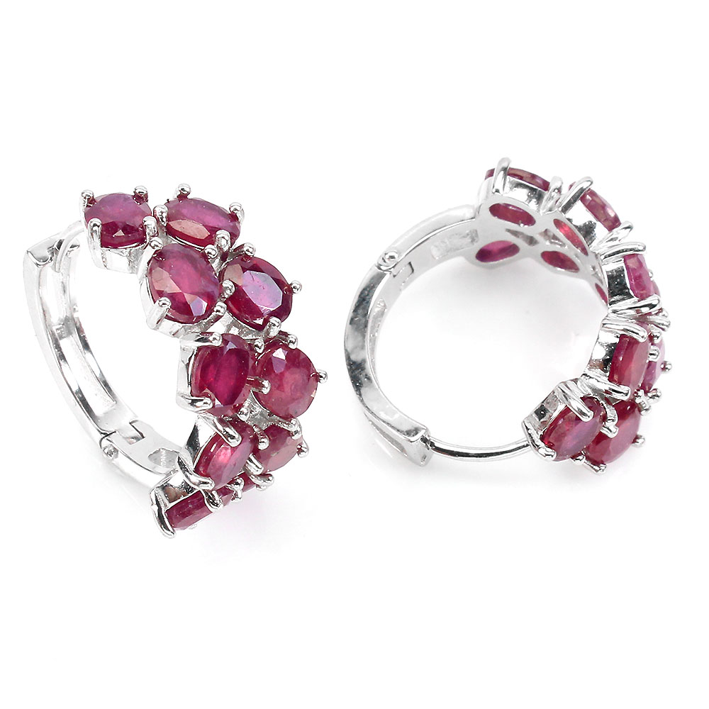 Heated Oval Red Ruby 5x4mm 14K White Gold Plate 925 Sterling Silver Earrings