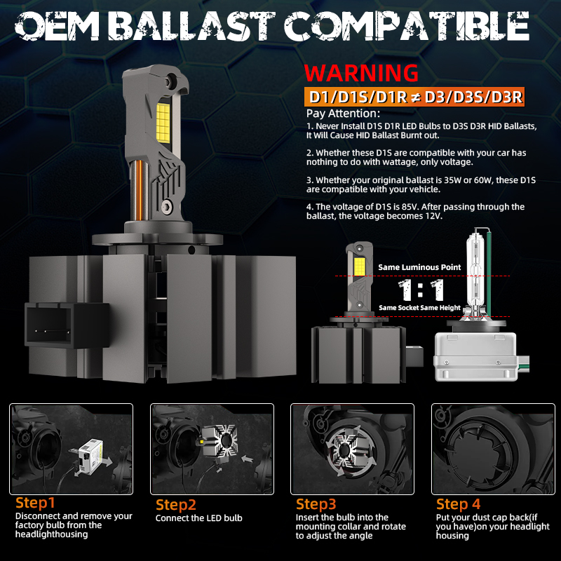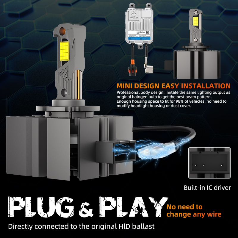 1, Easy Installation: RACBOX D-series LED Headlight is quick replace the original xenon HID bulb, plug and play with orginal HID ballast. Does not need to make any changes to the wire cable.