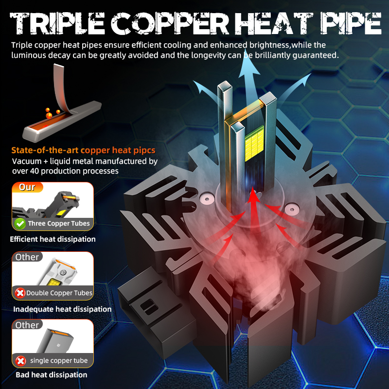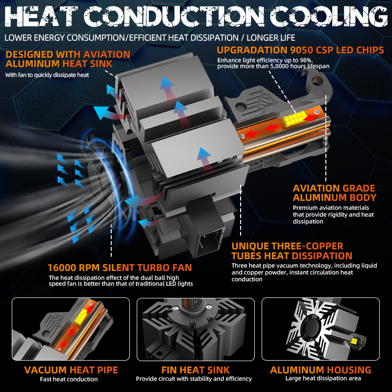 3, Upgrade Cooling System: D-series LED built in 3 copper heat pipes with a very high effective thermal conductivity, heat conductive is 3 times more than normal LED. Also have a high-speed cooling fan, ensuring ultra-low temperature.