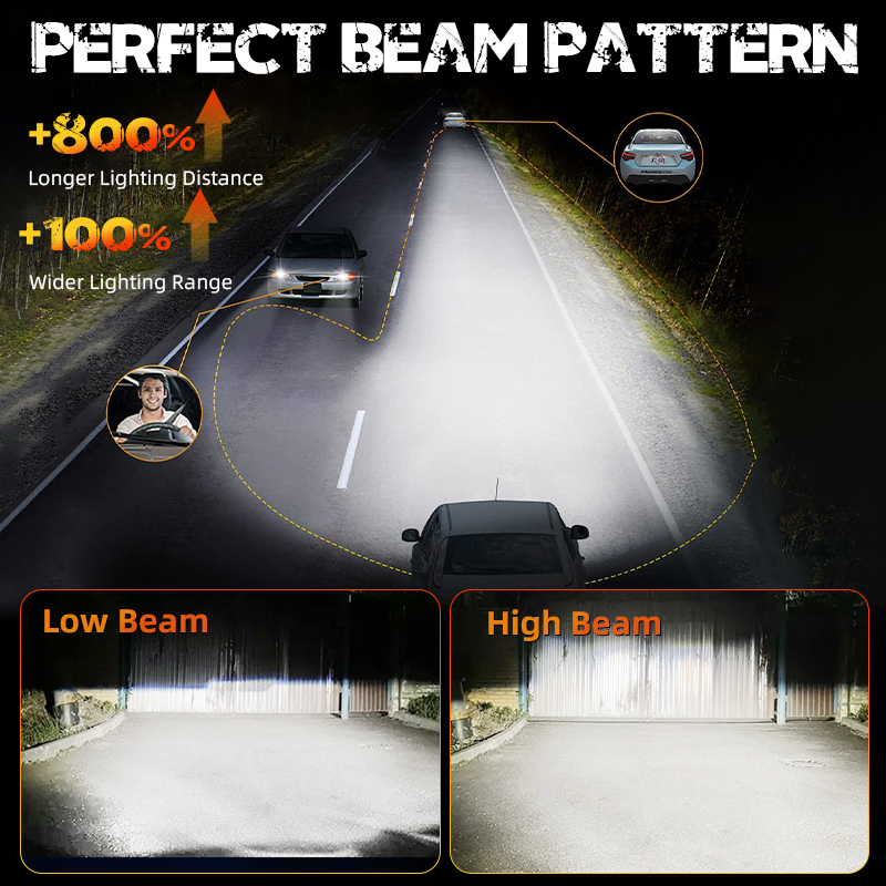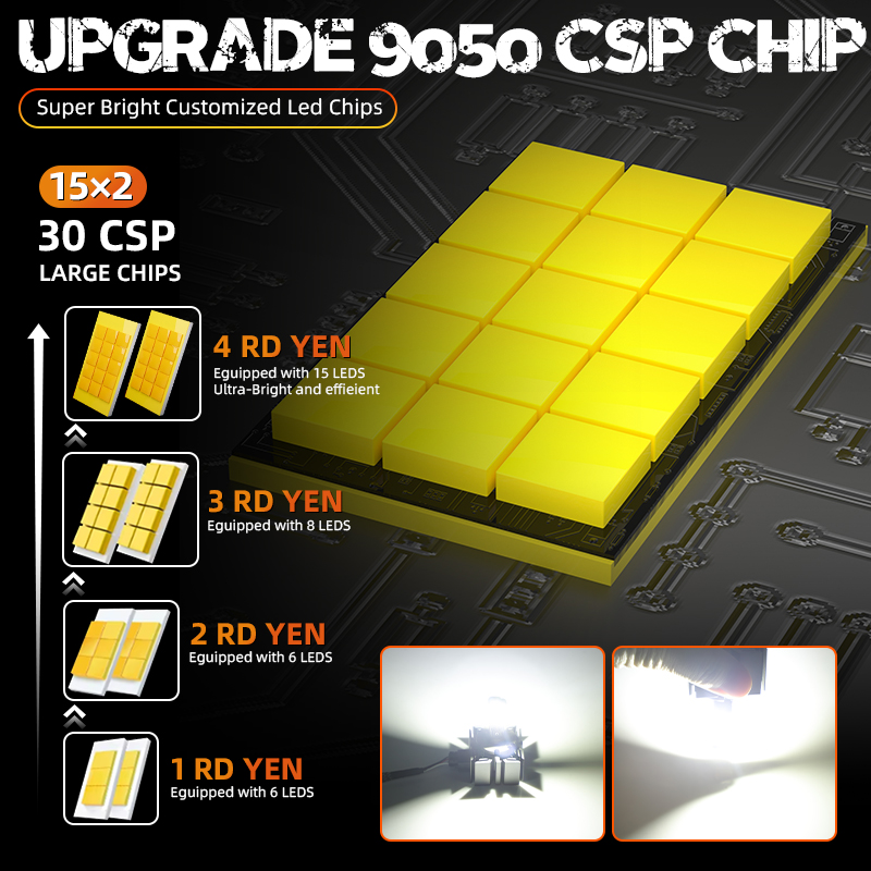 2, Super Brightness: D-series LED Headlight Bulb use industry-leading 9050 big chip LED, 600% brighter than original xenon bulb, 6000K white, improve visibility of night driving, it starts instantly in 1 seconds, make driving safer.