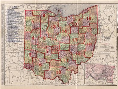 1910 ANTIQUE RAND MCNALLY NEW IDEAL ATLAS-MAP OF OHIO-RAILROAD LINES