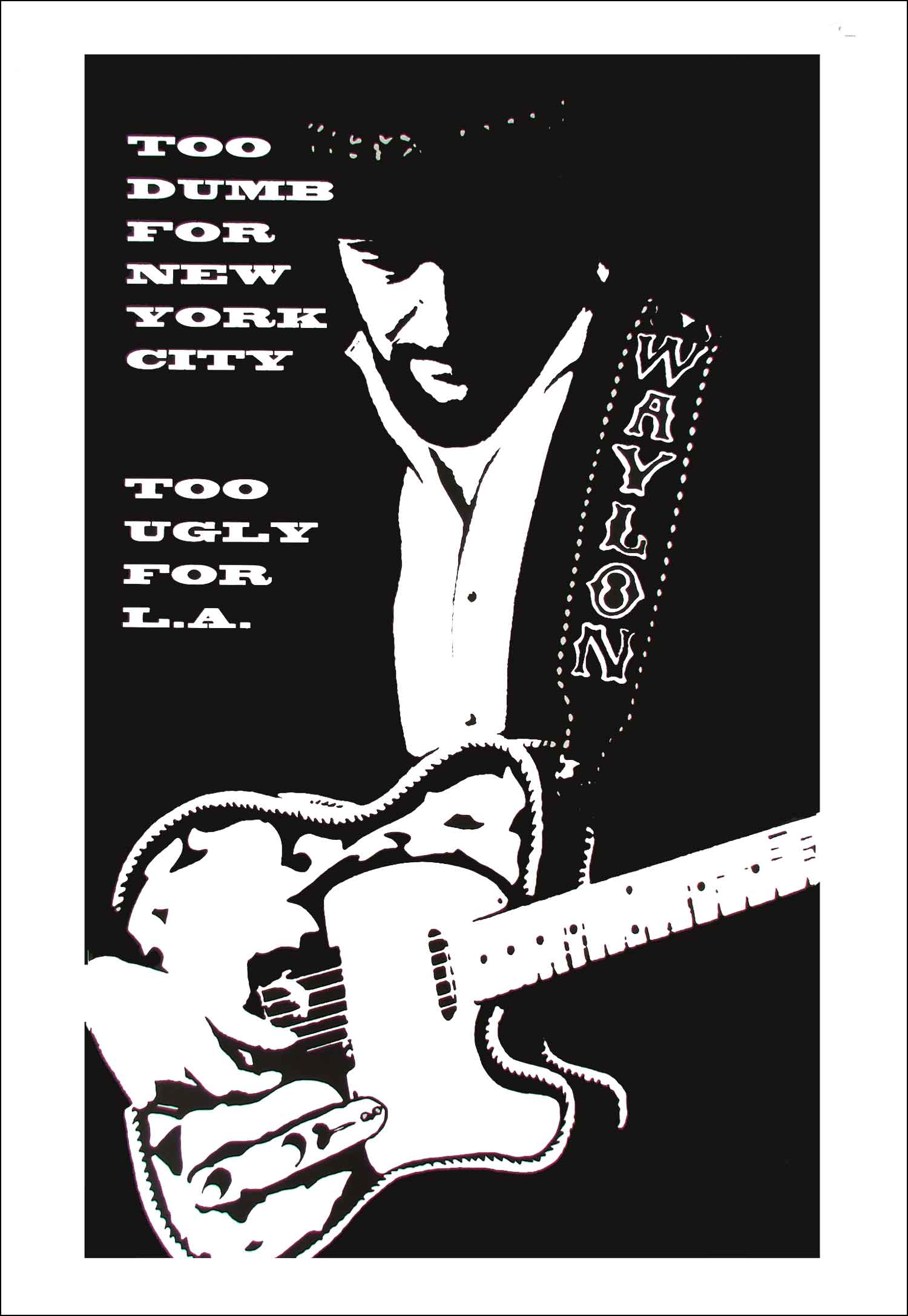 Waylon Jennings Poster "Too Dumb for New York City, Too Ugly for L.A." Really nice giclee print. Simple, but striking.