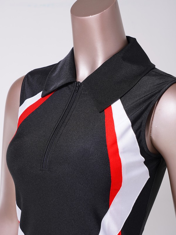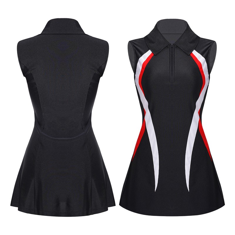 DE Tenniskleid Damen Ärmellos Reverskragen Sport Kleider Streifen Badminton