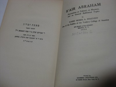 BY RABBI POLEYEFF OF YESHIVA UNIVERSITY, DESSERTATION ON TALMUD, ON MAIMON AND ON GENERAL RABBINICAL TOPICS