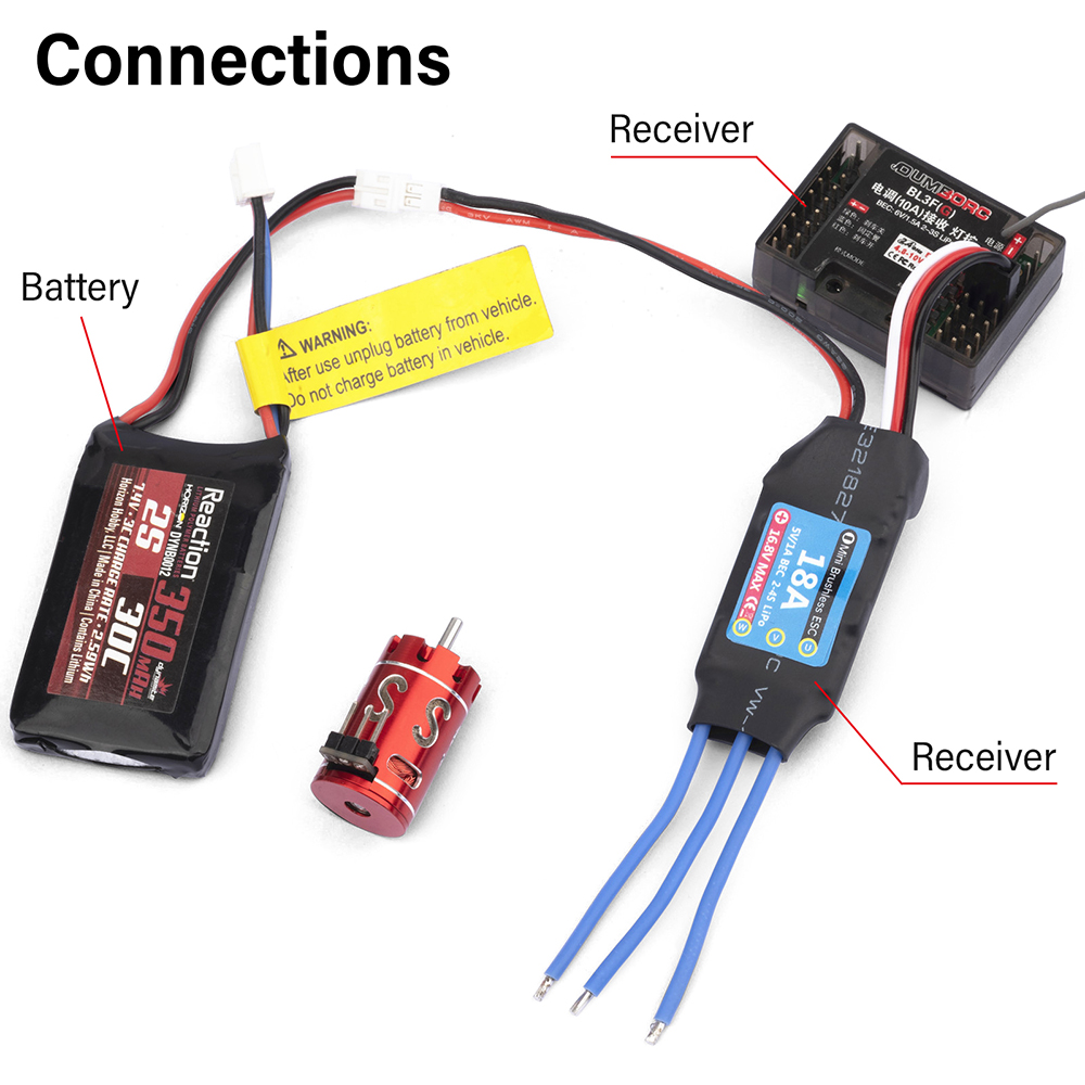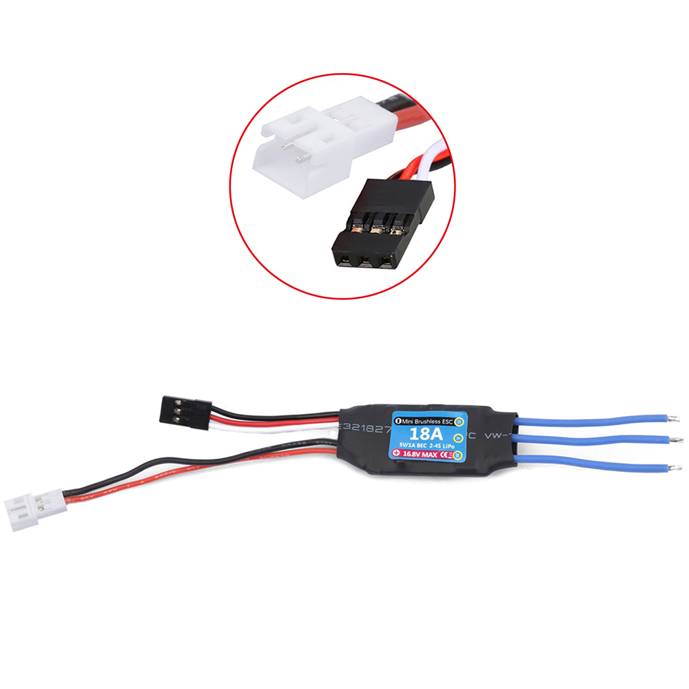 1. Parameters: ESC Support 2S 7.4V, Continuous Current: 18A, Burst Current: 40A, Receiver Plug:JR Plug Male,Power Plugs: JST Plug Female.