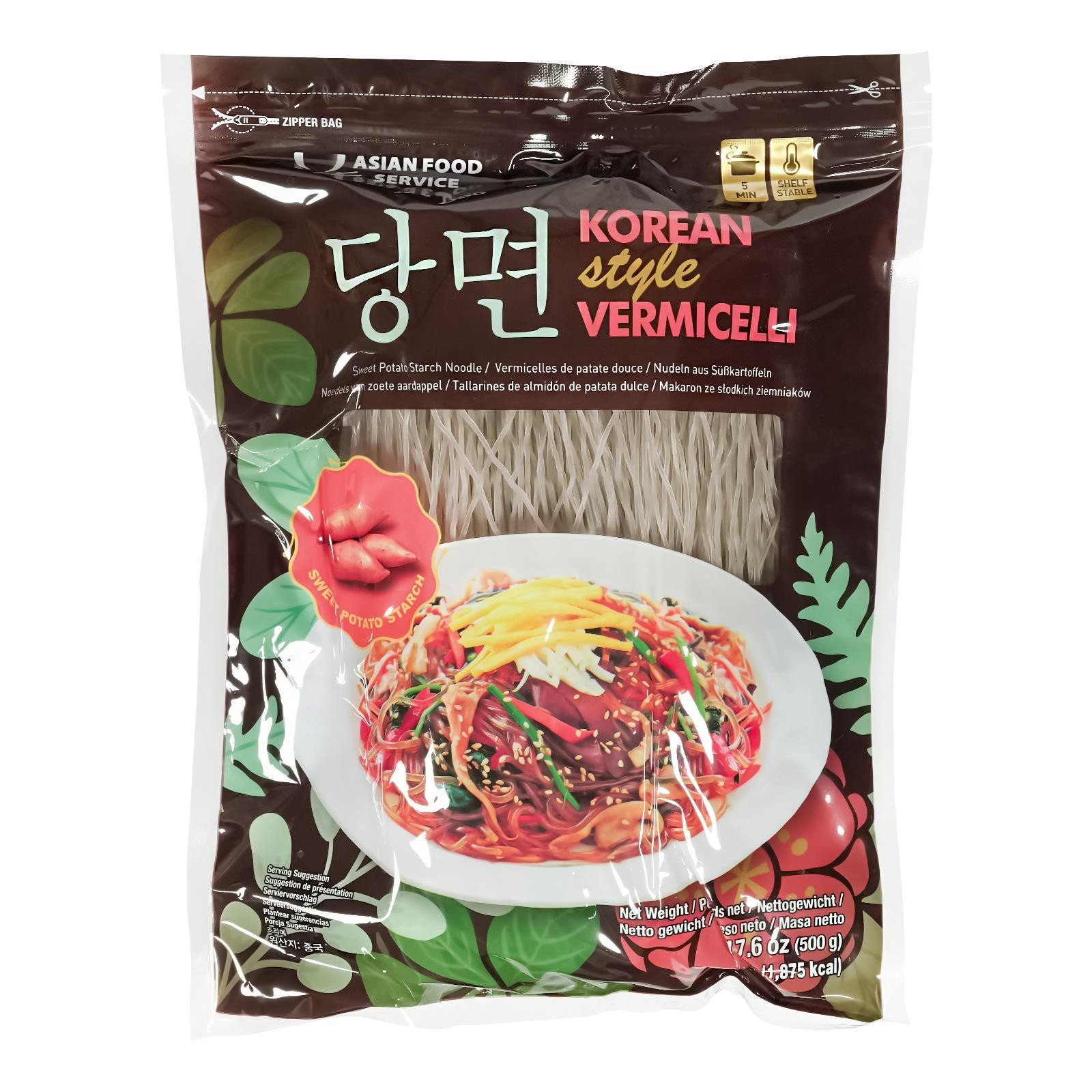 Die Glasnudeln aus Süßkartoffelstärke auch unter Minsok oder Dangmyeon bekannt sind in der koreanischen Küche sehr beliebt. Sie haben eine elastische Textur, sind transparent und haben die Eigenschaft den Geschmack von Saucen und Zutaten gut aufzunehmen..