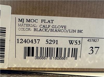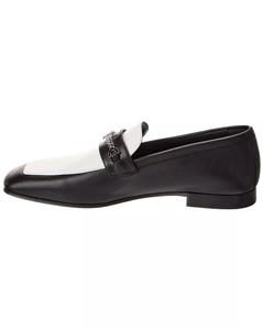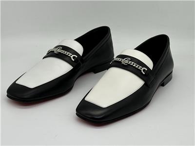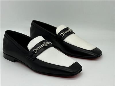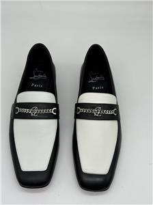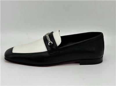 Designed in black and white calf leather, the MJ Moc loafer stands out for its sacchetto construction, a complex assembly technique performed by certain artisans, which ensures maximum flexibility for the shoe. This shoe features a square toe, topstitching and a silvertone chain on the top with the CL monogram. This pair has a slightly shiny finish in soft leather with a supple, second-skin feel (glove like feel).