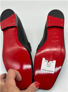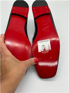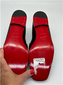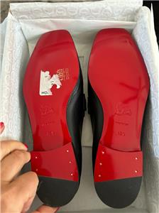 - Signature Louboutin red leather outsole