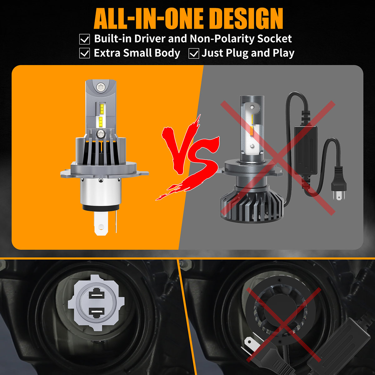 Efficient Cooling System: Whole aviation aluminum body, unique hollow-carved heat sink design with Intelligent IC make sure the LED conversion kits last longer.