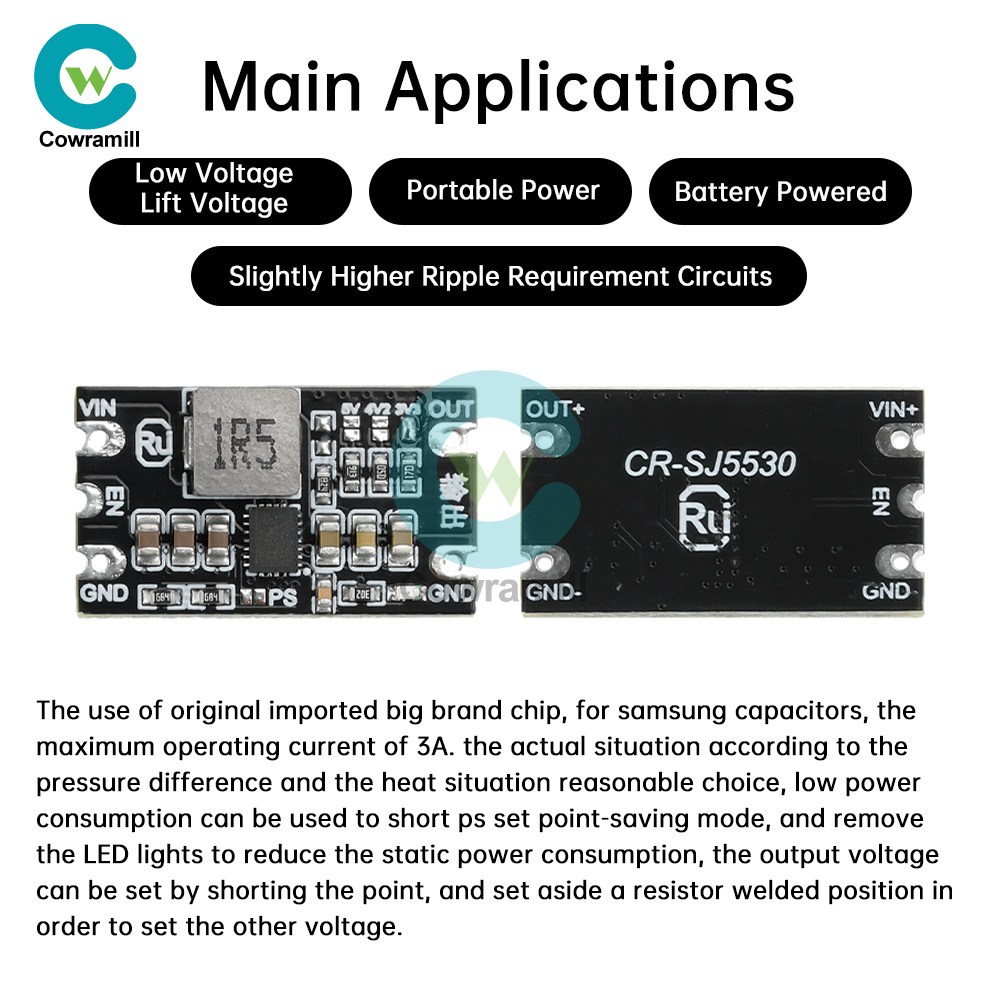 1.Provide 3.3V4V/5V commonly used output voltage customers can freely adjust the