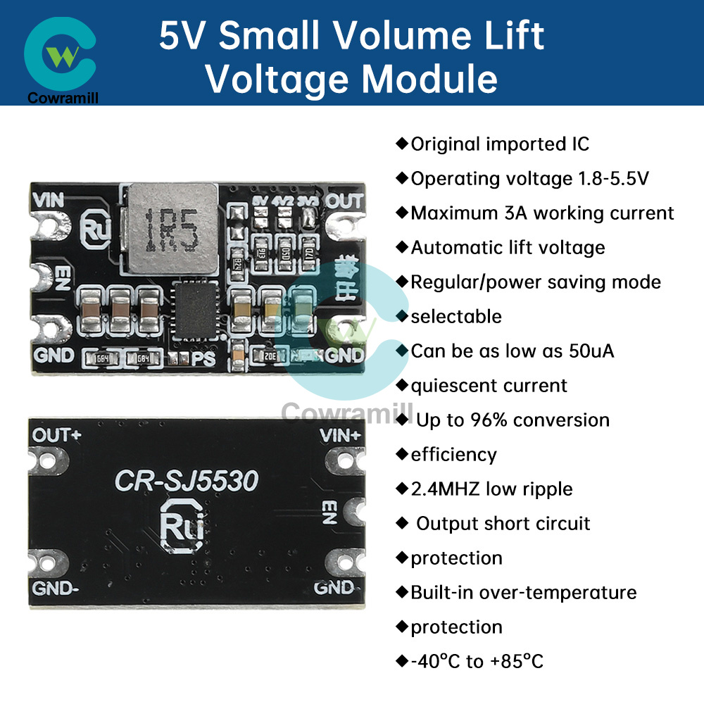 2. Without reverse connection protection, the module works with a min voltage of up to 1.8V, but the output power is small at low voltage.
