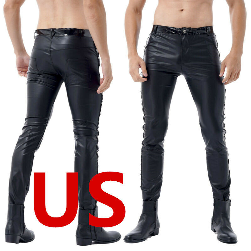 Mens Two-way Zipper Crotch Trousers Patent Leather Skinny Pants.