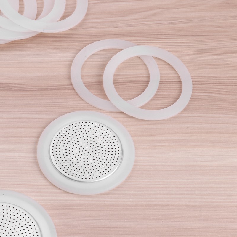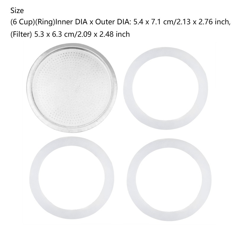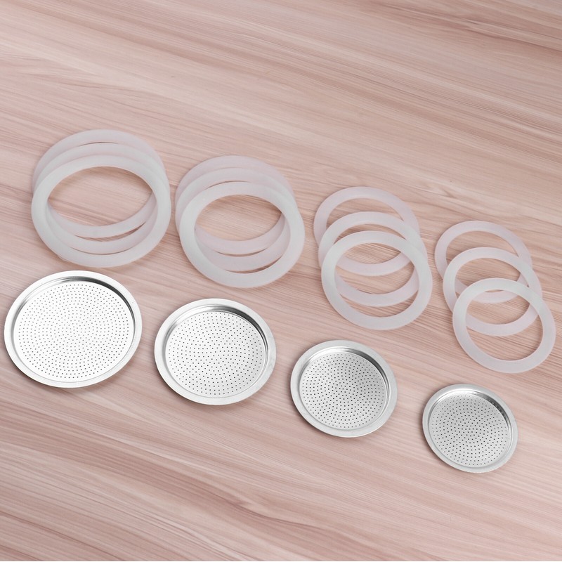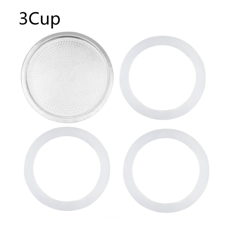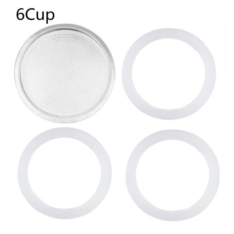 3/6/9/12 Cup Replacement Silica Gel Gaskets and Aluminum Filter for Moka Pot Coffee Bottle.