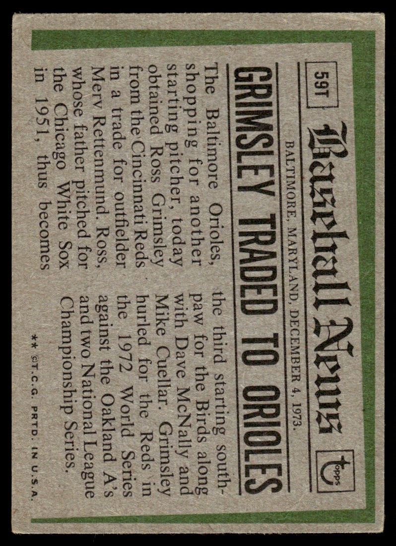 | 1974 Topps Traded **C** Ross Grimsley Baltimore Orioles #59T |