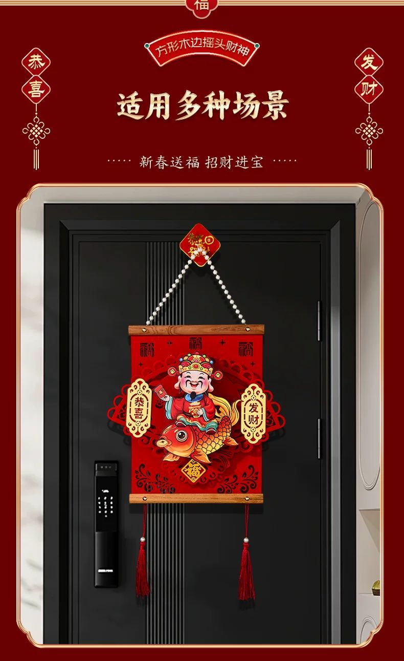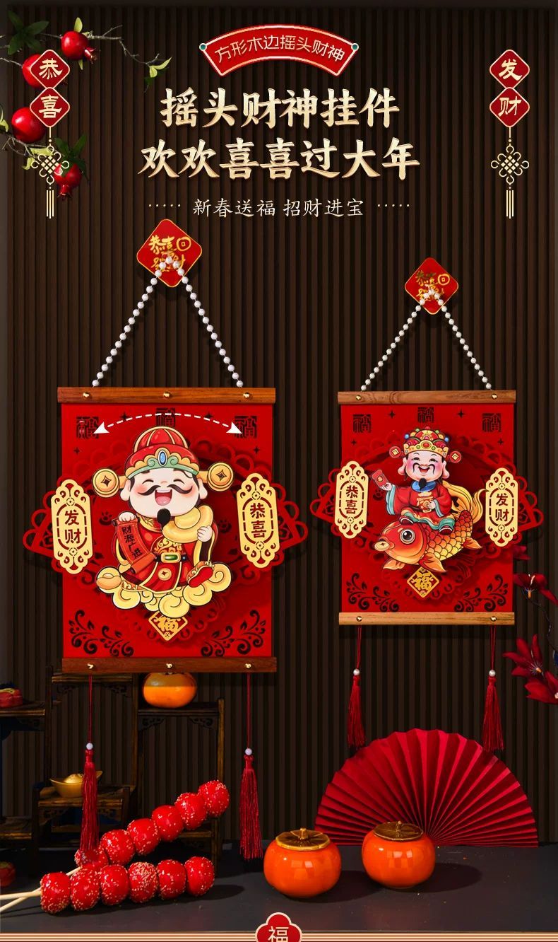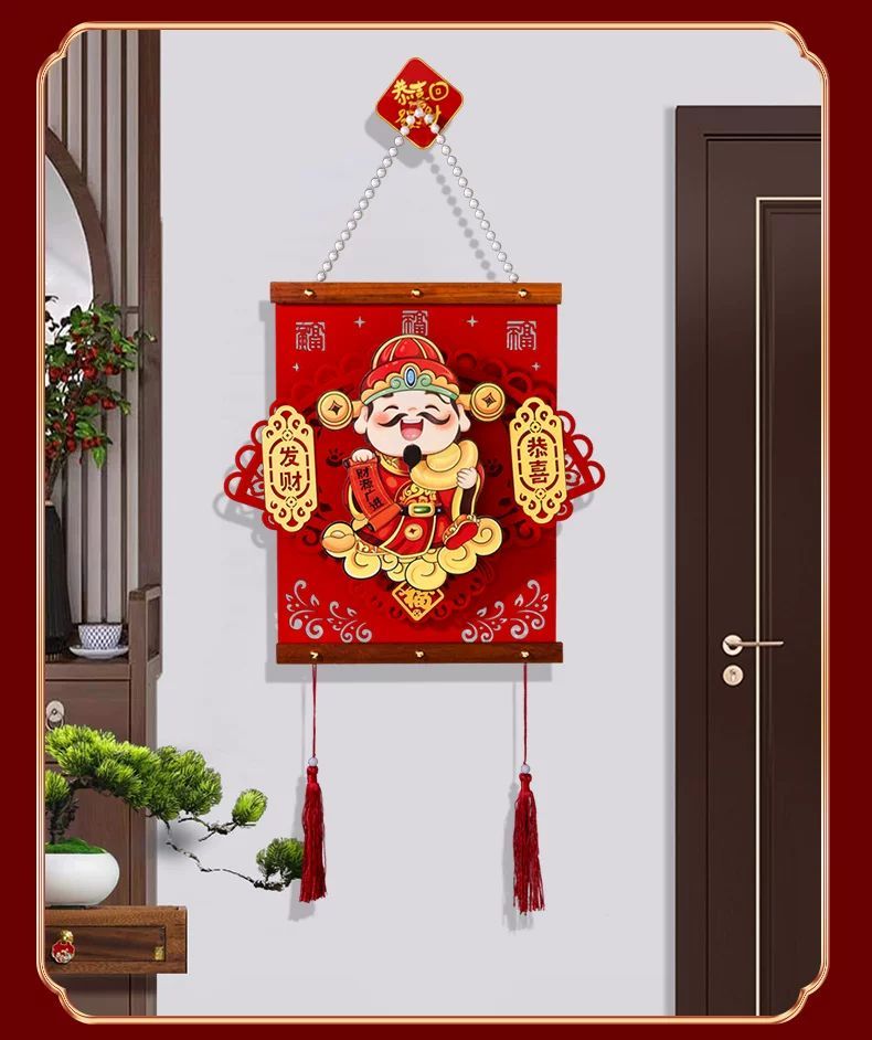 2025 New Year's Head God of Wealth Pendant Year of the Snake Spring Festival Chinese New Year Living Room Entrance Background Wall Atmosphere Decoration Snail Fun