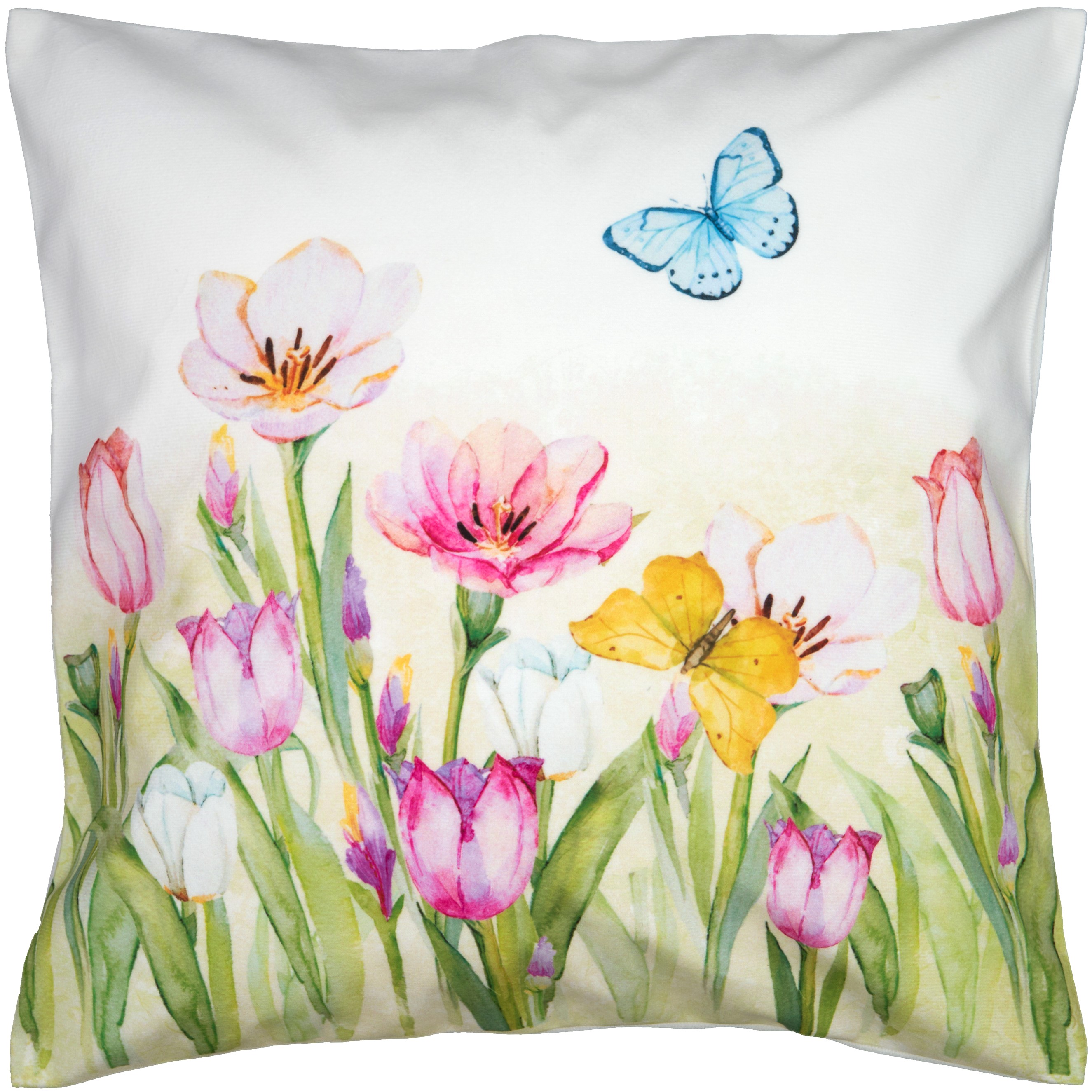 Kissenbezug 40x40 Frühling Tulpen Kissenhülle Weiß Rosa Bunt Dekokissen Sofakiss