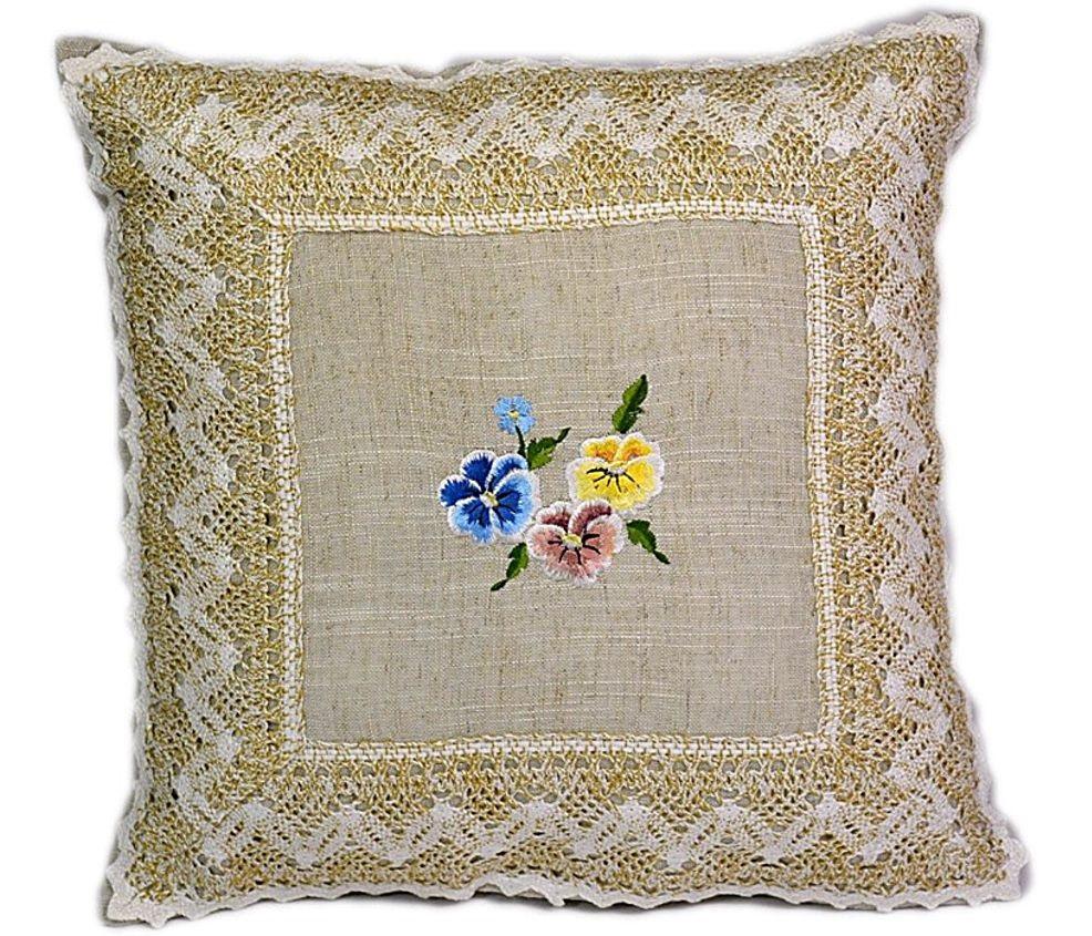 Kissenhülle 40x40 Kissenbezug Landhaus Kissen Frühling Hossner Stiefmütterchen