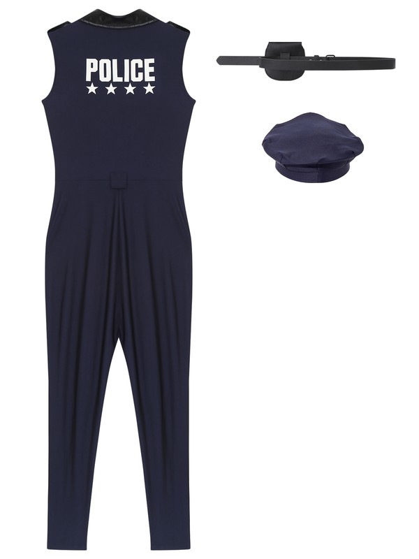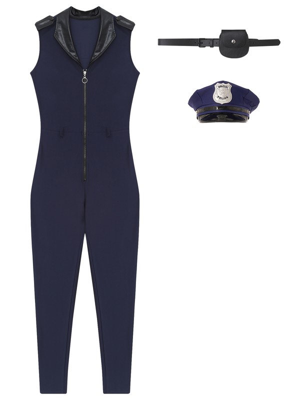 DE iEFiEL Damen Polizei Kostüm Overall Lang Und Geldbörse-Gürtel Hut 3er Set