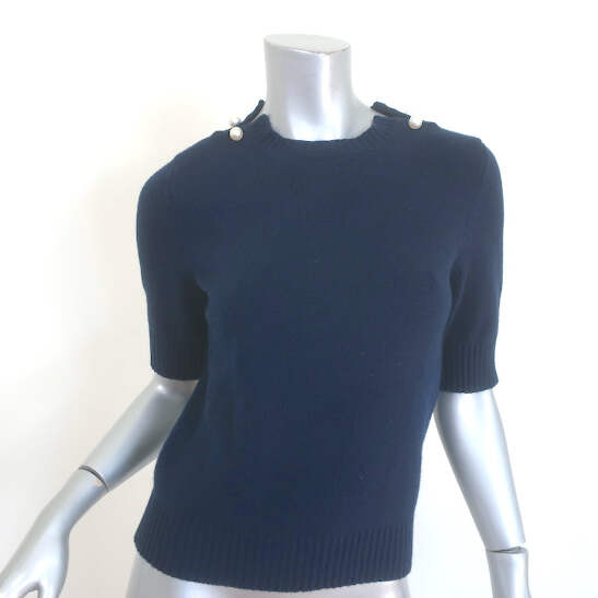Chanel Pearl Pin-Embellished Cashmere Sweater Navy Size 36 Short Sleeve Top