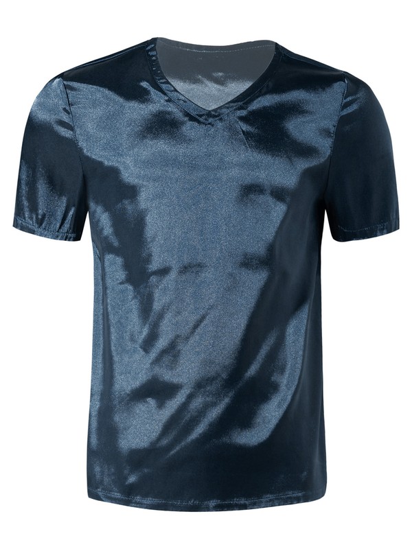 Men V Neck Short Sleeve Satin T-Shirt Loose Pajamas Tops Solid Color Loungewear Sleepwear Nightwear.