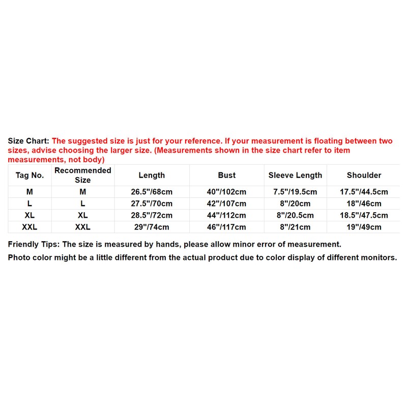| Tag No. | Recommended Size | Length | Bust | Sleeve Length | Shoulder |