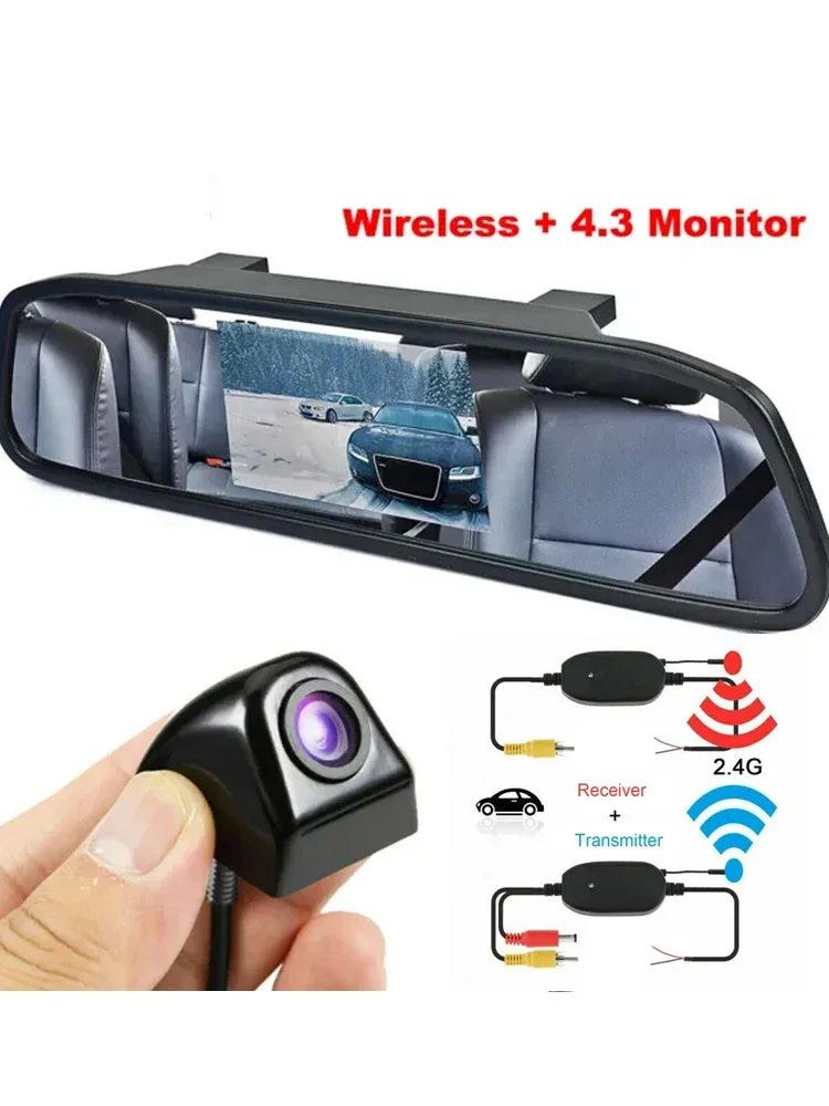 Wireless 4.3\\'\\' Car Mirror Monitor +Side Rear View Backup Reversing HD Camera Kit