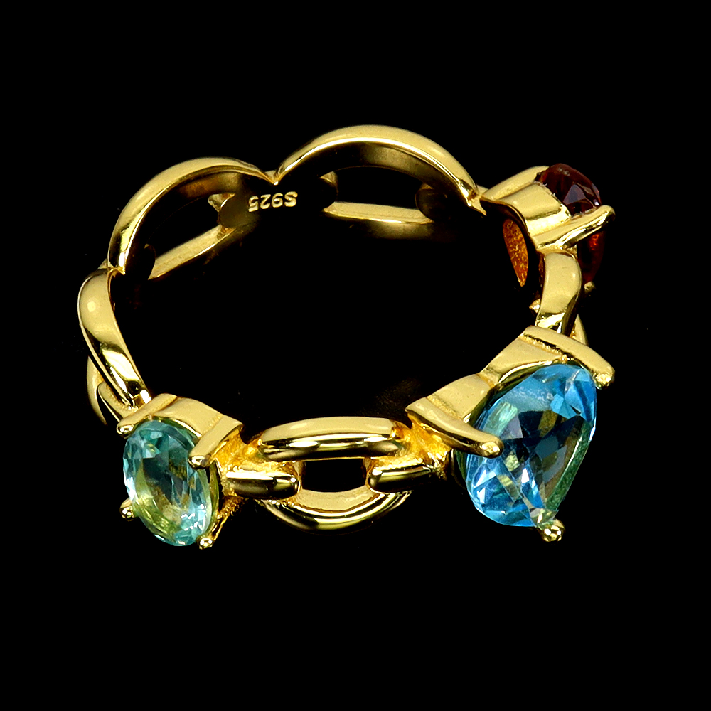 925 Sterling Silver Ring Heart Swiss Blue Topaz 7mm Citrine Gemstone Jewelry