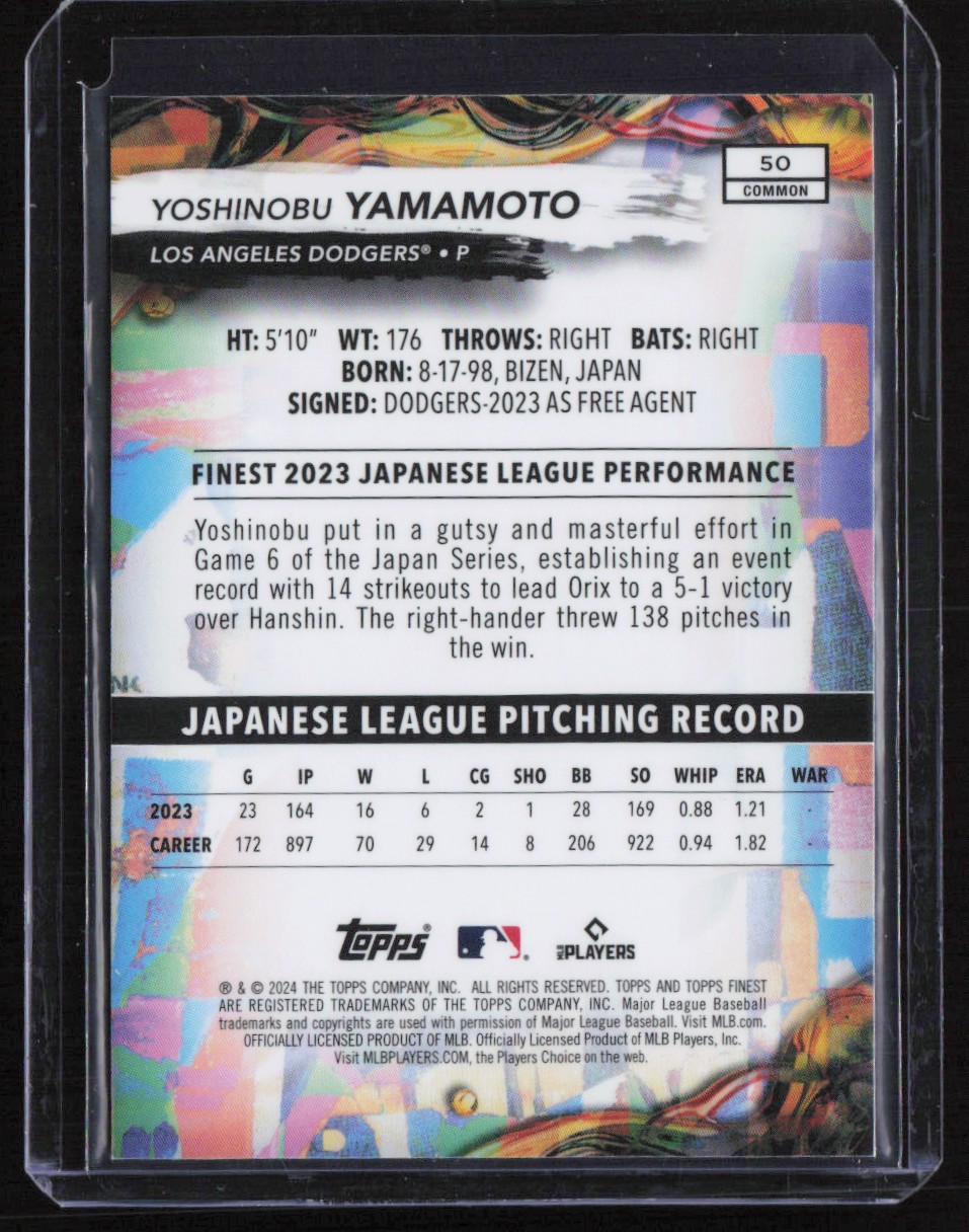 2024 TOPPS FINEST YOSHINOBU YAMAMOTO #50 COMMON