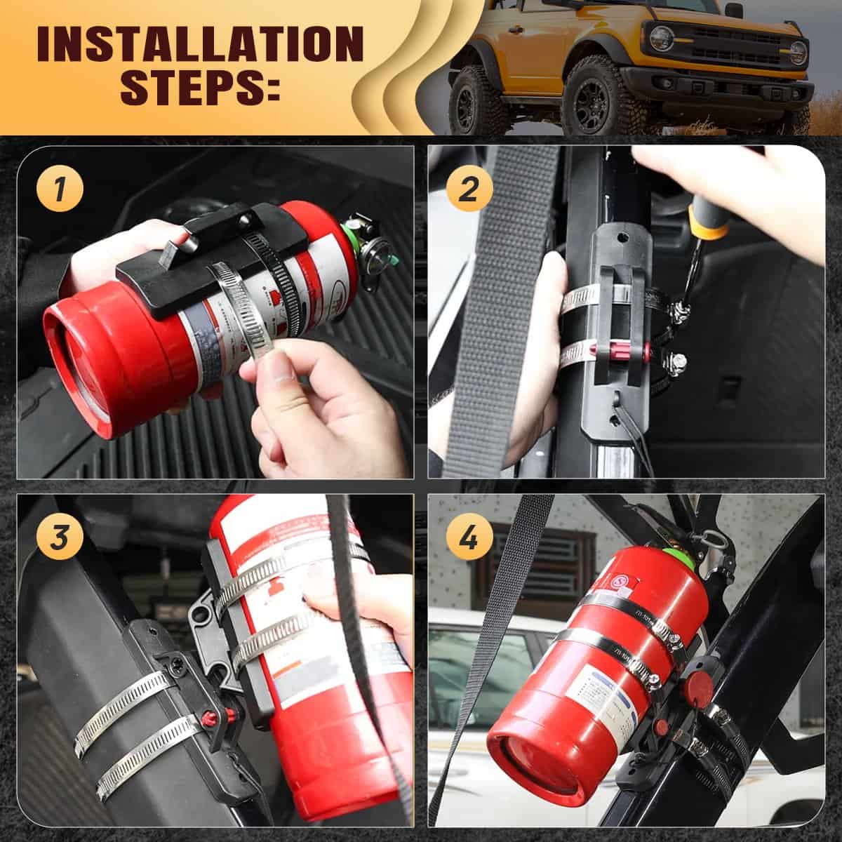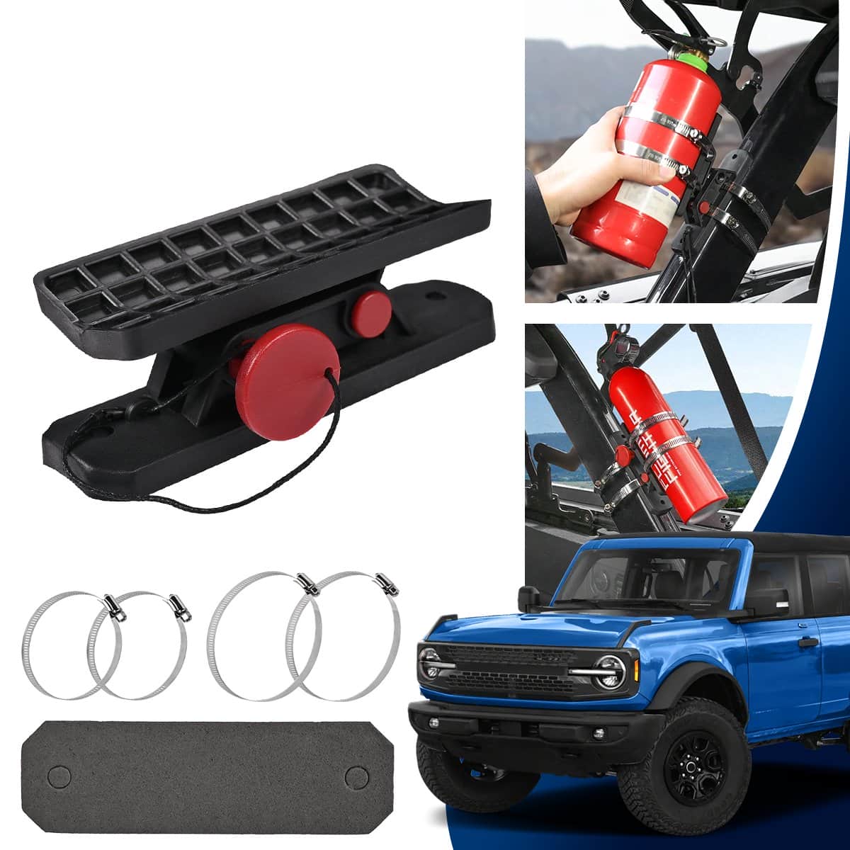 Features: The fire extinguisher bracket is of fine Nylon + Stainless steel made, which is firm and durable to use. Within the package there are 4 pieces fixing rings that you can use to fix the extinguisher to your vehicle, which is convenient. The fire extinguisher bracket is of small size and weight that can be easily carries or operated. The fire extinguisher bracket is the optimal choice for you to replace the old one when you need to change. Specification: Material: Nylon + Stainless steel Color: Black Install: Tailgate Anti-roll Bar Adjustable Ring Range: Fixing ring small: 65~89mm(for Roll Bar) Fixing ring large: 78~101mm(for Extinguisher) Fitment: Fits For Yamaha Fits For Polaris Fits For Kawasaki Fits For Can Am Fits For Kymco and etc Fits For Wranglers TJ/JK/JL 1997-2024 Fits For Bronco Off-road 2021-2024 ALL UTV & ATV Fits For Polaris Ranger with roll bar diameter 65-89mm Fits For Polaris RZR with roll bar diameter 65-89mm Please verify the appearance/shape/size exactly fit your vehicle Before purchasing. Package includes: 1x Fire Extinguisher Bracket Note: The real color of the item may be slightly different from the pictures shown on website caused by many factors such as brightness of your monitor and light brightness. Please allow 1-5mm slight manual measurement deviation for the data.