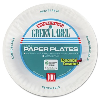 AJM Packaging Corporation 9 in. Diameter Paper Plates - White (100/Pack)