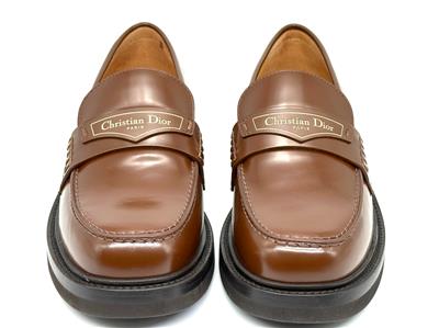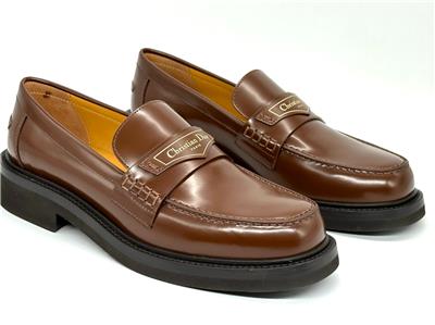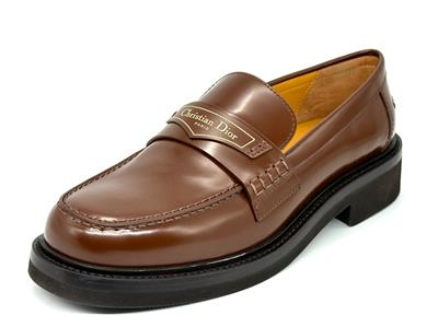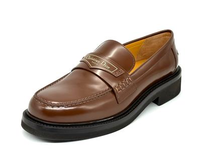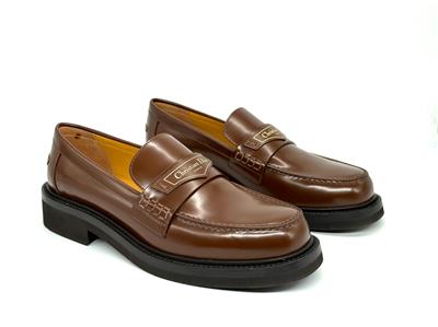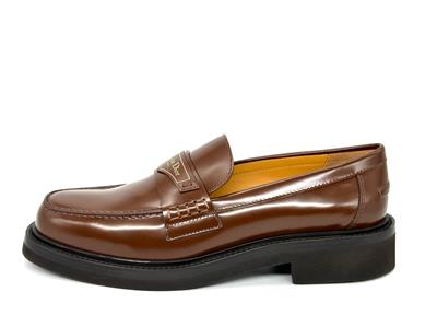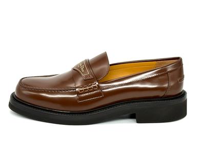 Made in Italy Boy Leather Loafer in brown brushed calfskin leather with logo printed strap