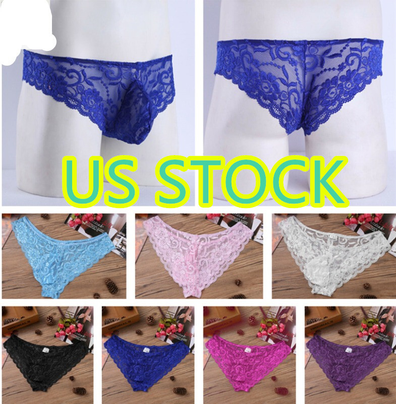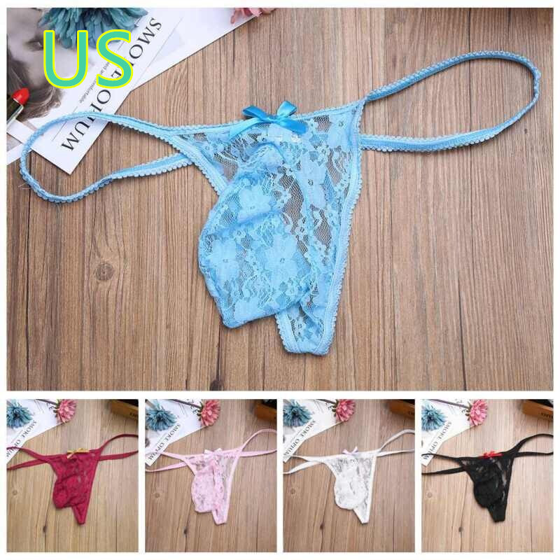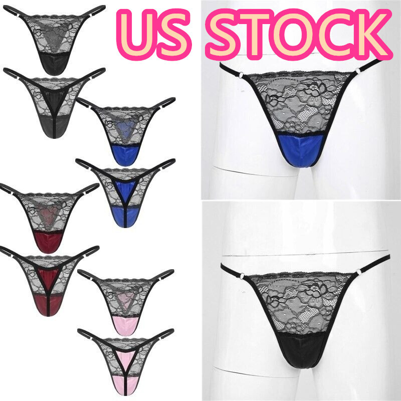 Men Floral Lace Crotchless T-back Briefs Hollow Out Low Waist Thong Underpants.
