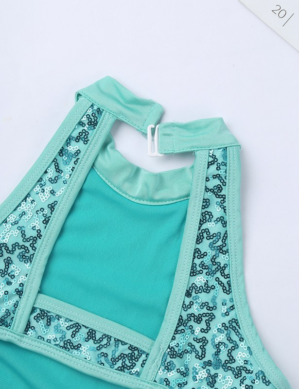 Cutouts back, strappy back waist. High cut leg line. Stylish and dazzling dancewear for your girl.