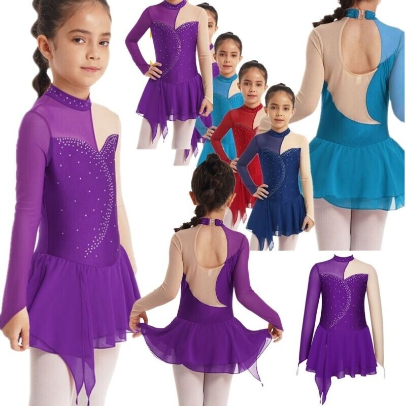 DE iEFiEL Mädchen Eiskunstlauf Turnanzug Glitzer Ballett Leotard Ballettkleid