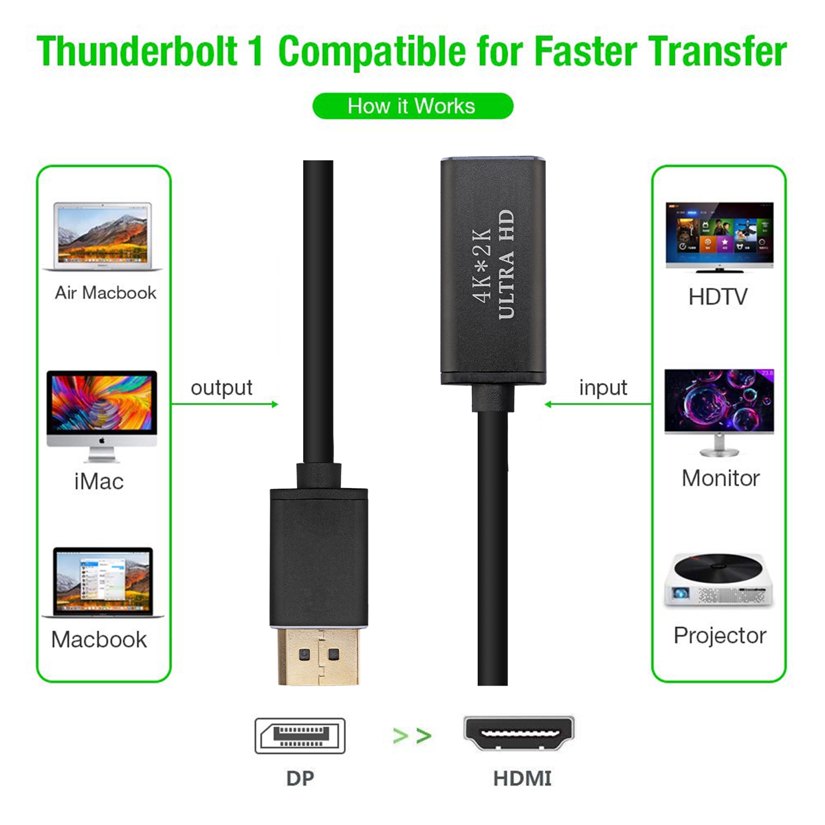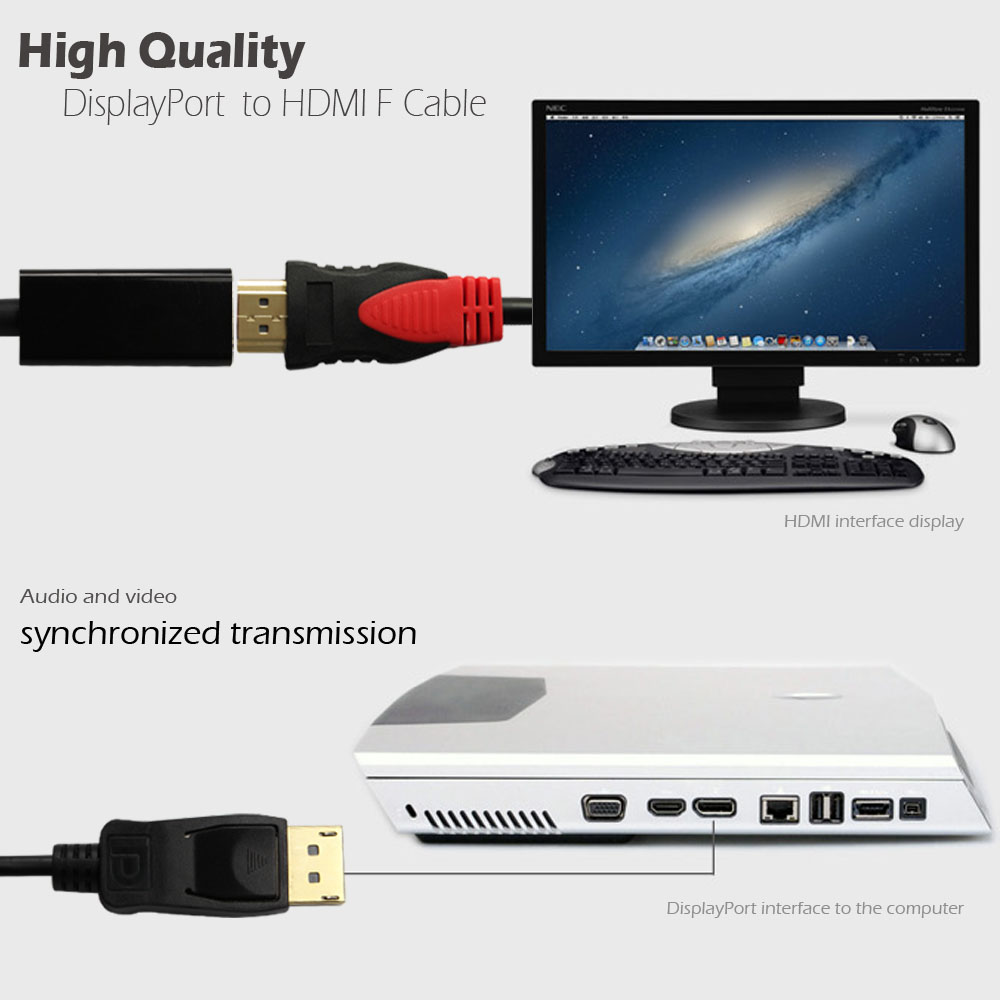- Audio Video Sync: Display port to HDMI adapter cable transmits high-definition video and audio from your computer to an HDTV for video streaming or gaming;