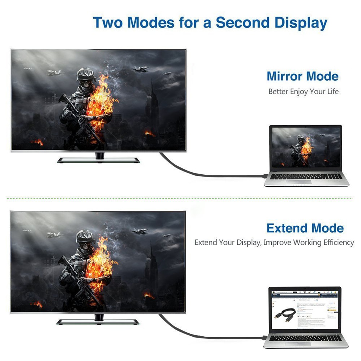- Mirror or Extend your Computer: under mirror mode, you could view your laptop or desktop's screen or video on display or tv, easily play games or movies to TV; under extend mode, you could connect a second monitor to computer, to give them a larger desktop on which to work;
