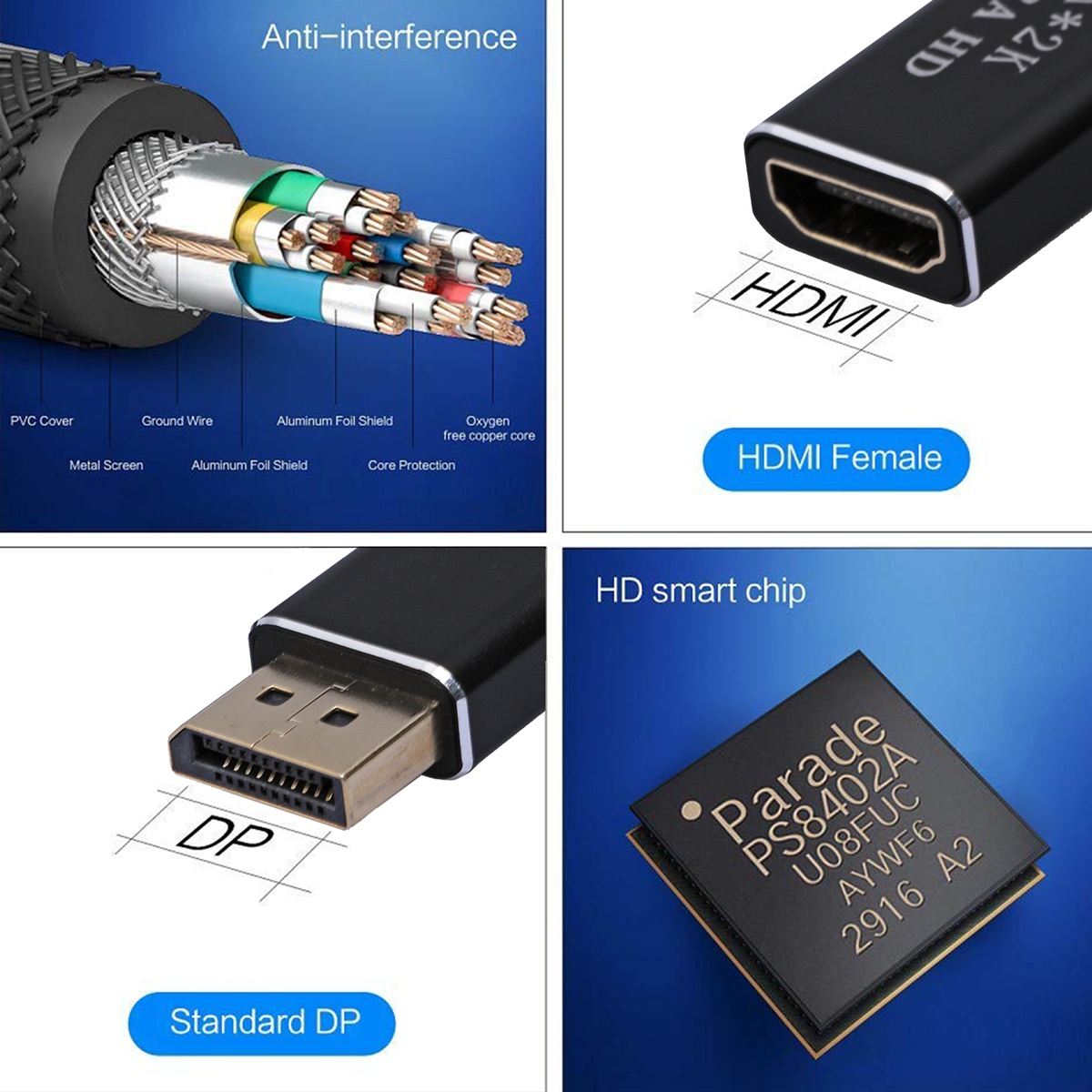 - Active DisplayPort to HDMI 2.0 Adapter Cable (Supports displays up to 4K / UHD / 3840x2160@60Hz)