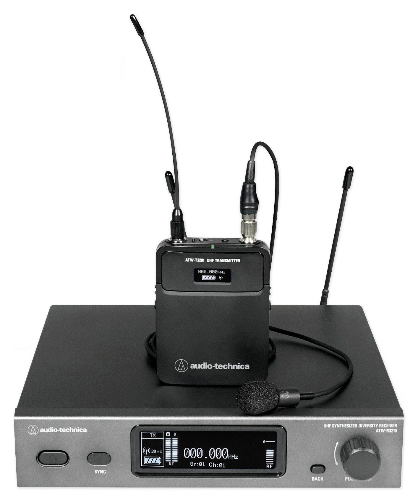 This system configuration features an ATW-R3210 receiver along with an ATW-T3201