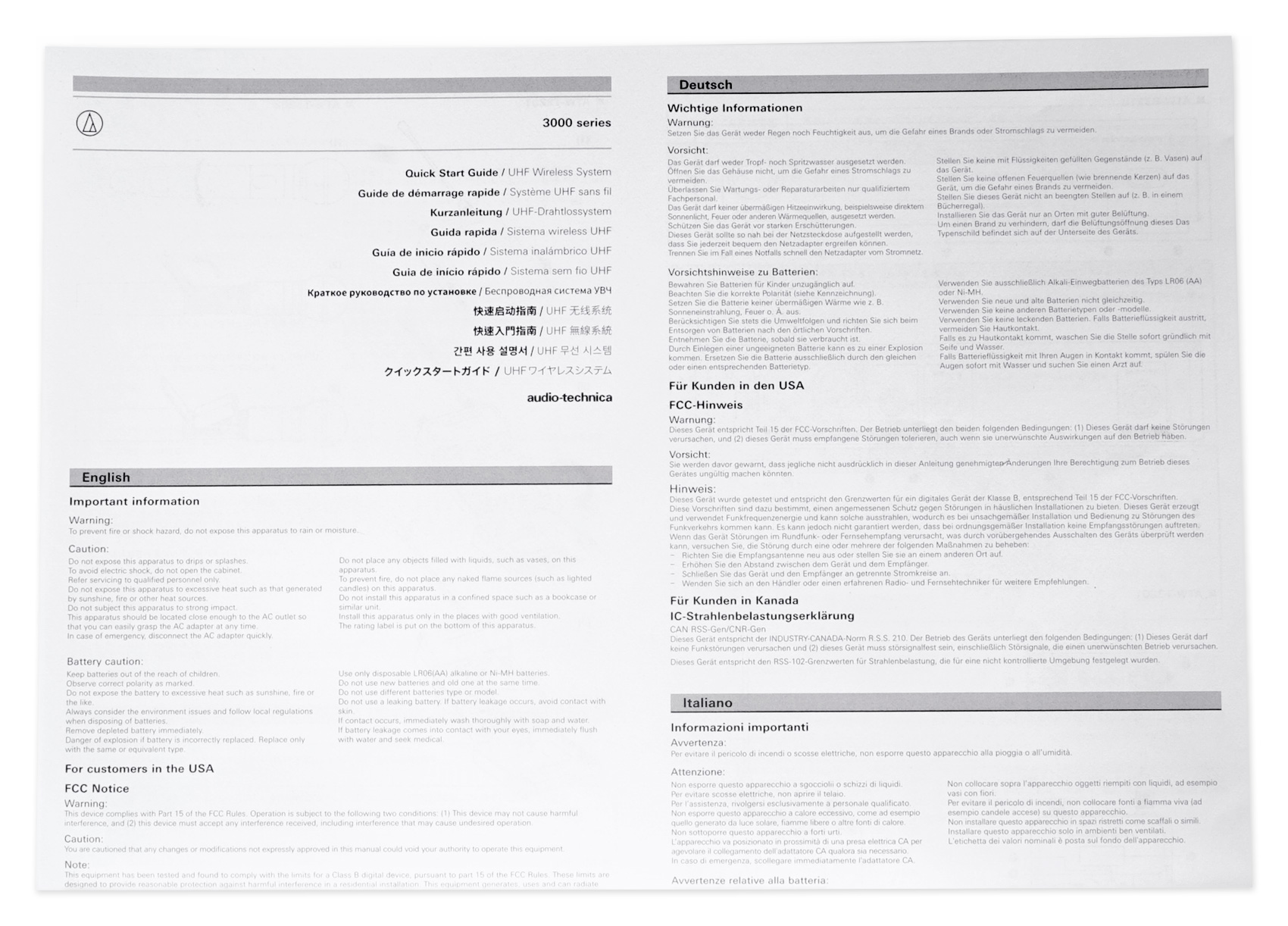40 Channels per band* For assistance with multi-band operation or other frequency coordination issues, please contact your regional Audio-Technica customer service representitive. *Region and band dependent |