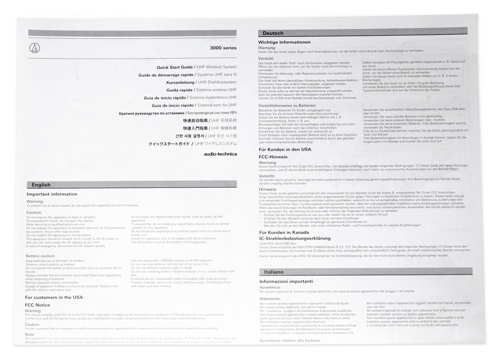 40 Channels per band* For assistance with multi-band operation or other frequency coordination issues, please contact your regional Audio-Technica customer service representitive. *Region and band dependent |