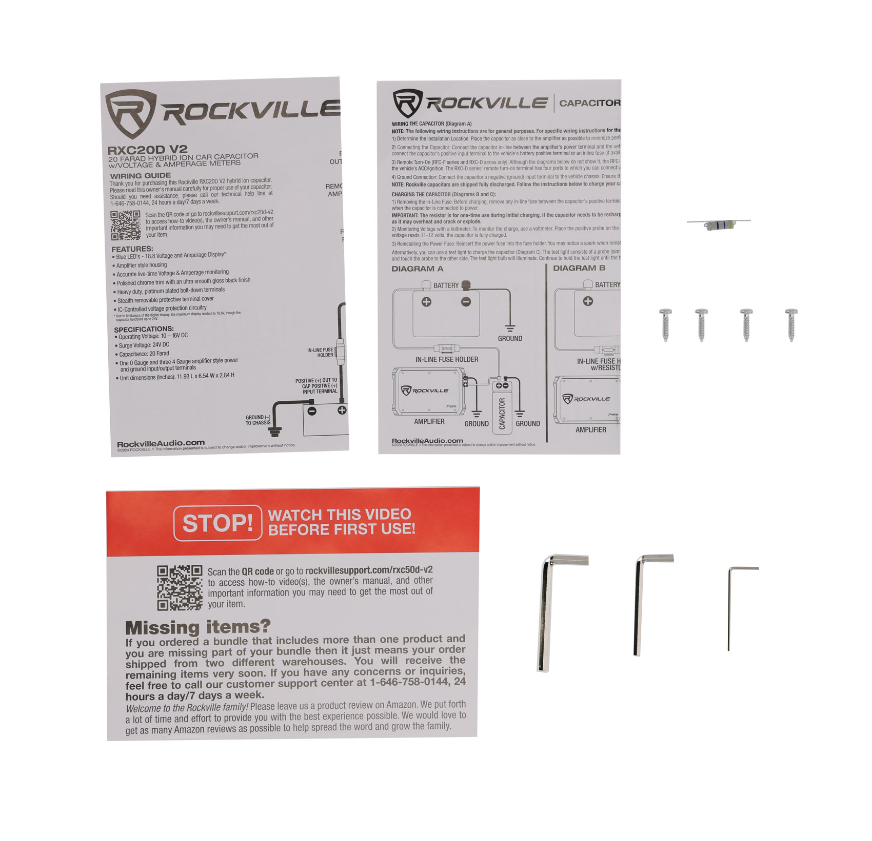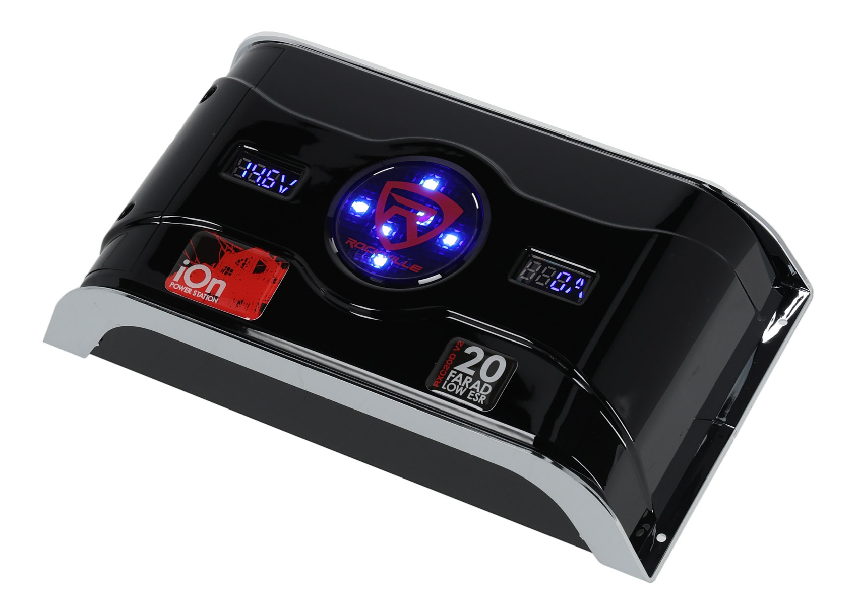 The Rockville RXC20D V2 is a 20-farad Ion capacitor and is capable of working with systems totaling over 5,000watts of power. We used the latest in advanced Ion Capacitor technology to ensure that our capacitor not only holds more energy, but also delivers it in nano seconds; enabling the RXC20D V2 to not only be faster, but also more efficient than traditional capacitors on the market. No short cuts were taken when designing the RXC20D V2; using bolt down style platinum plated terminals, heavy duty 0 gauge inputs for both power and ground, solid 4 gauge amplifier connectors, along with a beautiful polished chrome trim, topped with an ultra smooth gloss black finish.