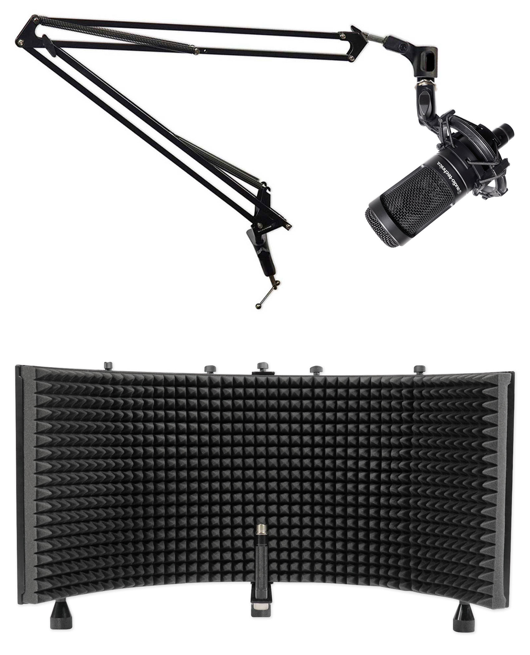 Package: Audio Technica AT2050 Side-Address Multi-Pattern Condenser Studio/Recording Microphone + Rockville DMS40 40" Microphone Boom Arm Studio Podcast USB Mic Stand with Desk Clamp + (1) Rockville ROCKSHIELD 3 Large Studio Mic Isolation Shield with Sound Dampening Foam with Sound Dampening Foam