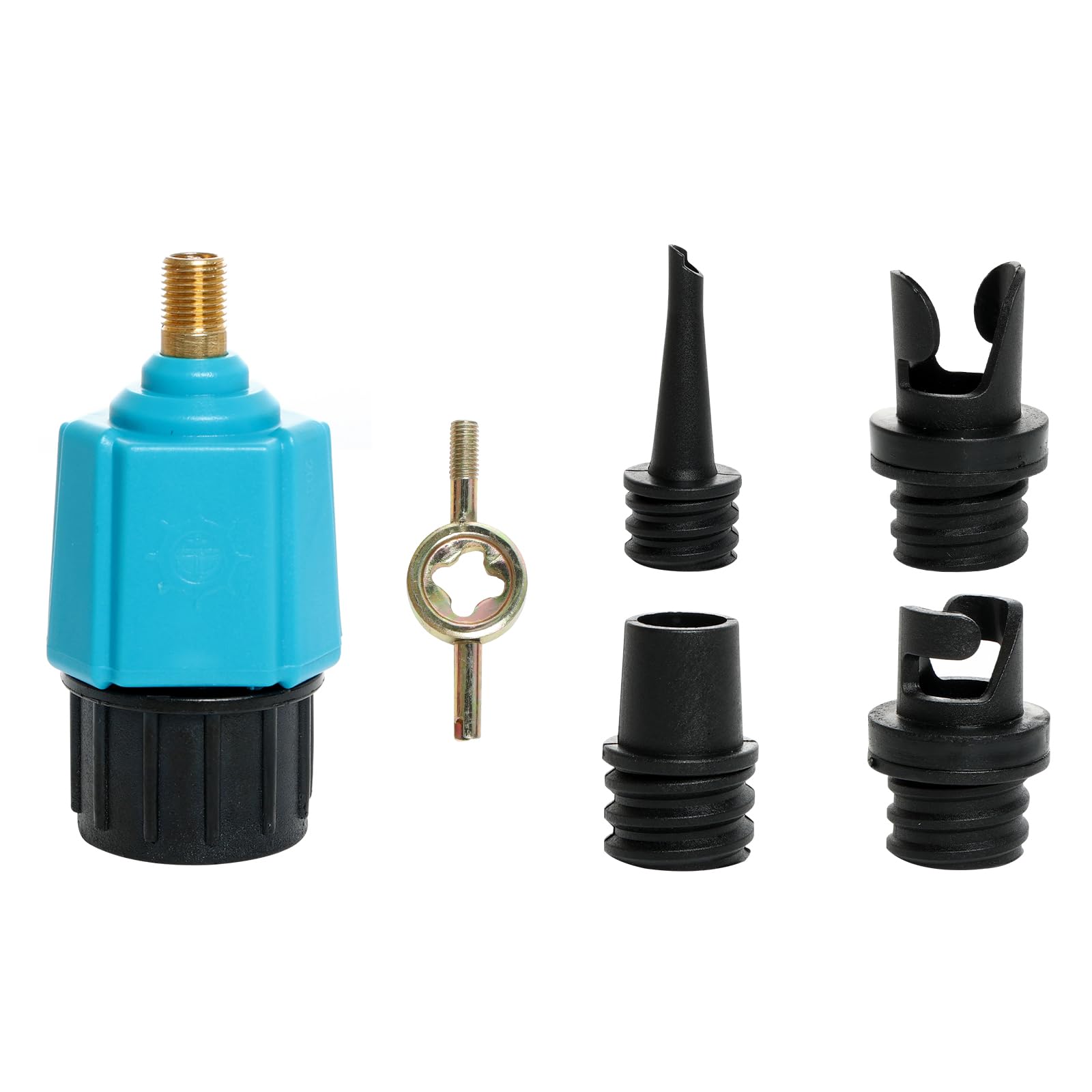 - SUP Pump Adapter Kit: You will receive 1 air pump adapter, 4 air nozzle converters and 1 spool spanner. The air Stopcock adapter kit is lightweight and easy to carry, and it is also very convenient to take out the door for inflation.