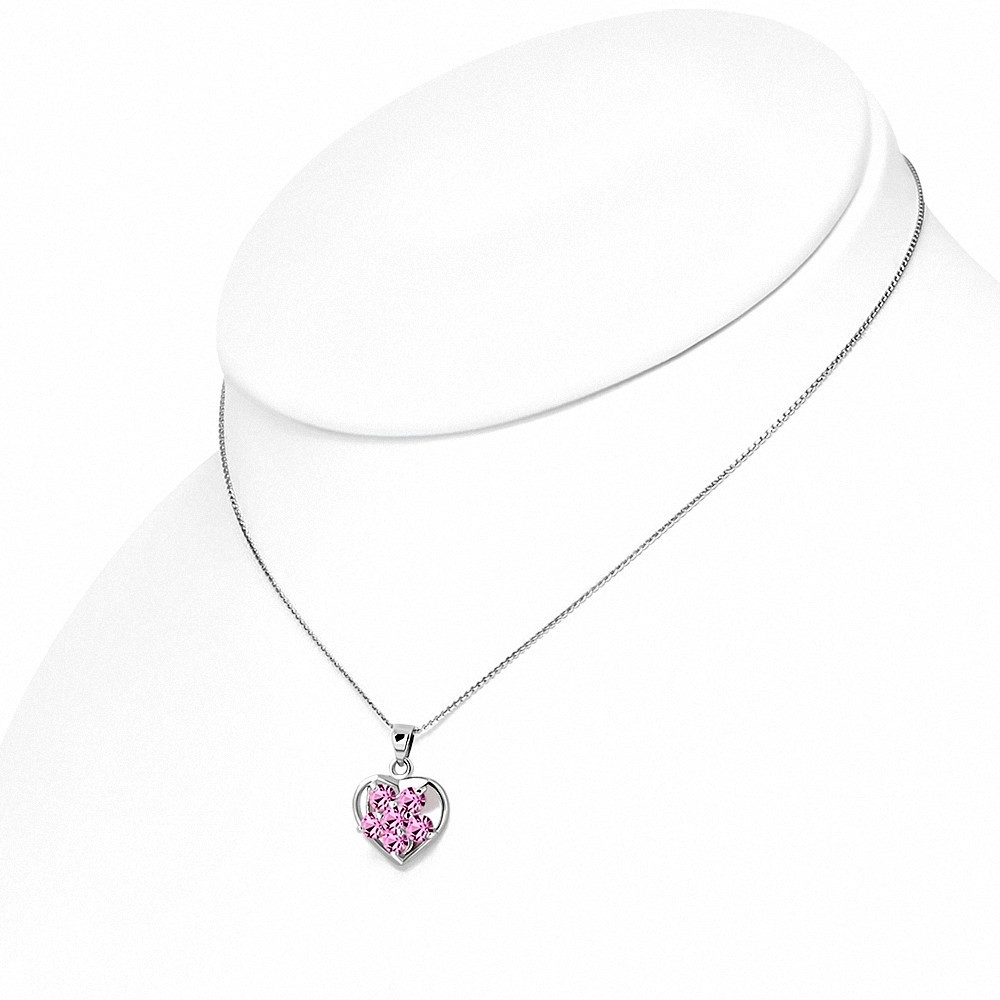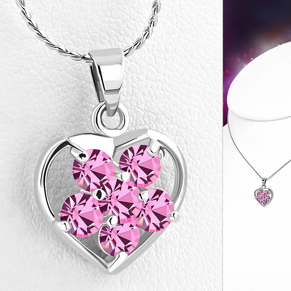 Alliage de mode cristal fleur ouverte collier coeur amour charm chaîne rose rose CZ Alliage de mode cristal fleur ouverte collier coeur amour charm chaîne rose rose CZ